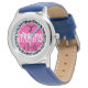 Uhr, Kinderuhr aus Edelstahluhr mit lila Lederarmband