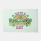 Doormat mit einem Thema des St. Patrick's Day. Ein Retro-Grunge-Stil, der sagt: "Viel Glück! Mit einem bunten Regenbogen dahinter. Wörter geschrieben in einem fetten abgerundeten Retro-Stil. Rosa und grüne Farben.