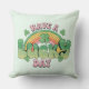 Kissen mit einem Thema des St. Patrick's Day. Ein Retro-Grunge-Stil, der sagt: "Viel Glück! Mit einem bunten Regenbogen dahinter. Wörter geschrieben in einem fetten abgerundeten Retro-Stil. Rosa und grüne Farben.