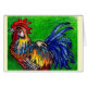 Farbiges Bleistift- und Tintenzeichnen eines Hahns.