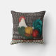 Dieser illustrierte Hahn konfrontiert eine Tafel, die mit Morgengrüßen gefüllt wird! Ein buntes und grafisches Landartkissen, das Gespräche begonnen erhält.