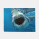 Kümmern Sie sich um Ihre Freunde und Feinde mit diesem hungrigen Hai willkommen Matte, die aus den Tiefen des Ozeans schwimmt, um jedem, der es wagt, im Weg zu stehen, einen Biss zu nehmen.