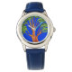 Kinderuhr aus Edelstahl mit blauem Lederarmband