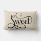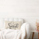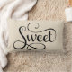 Das Wort "Bonbon" in einem schwarzen Skript-Schriftart. Der neutrale Hintergrund auf dem Kissen kann gelöscht werden und die Farbe leicht geändert werden, um Ihren Dekor unter Verwendung des Kundenbezogenheitswerkzeugs zusammenzubringen. Teil des Sets der süßen Träume.