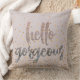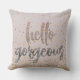 Ein reizendes Typografieentwurfs-Sprichwort "hallo herrlich" mit handgeschriebenen Tintenbürsten-Schriftart- und -Rosengoldfolienstreifen über düsterer Flieder und Singrün des Watercolor. Der Hintergrund ist eine blasse Flieder mit zusammenpassendem Rosengoldconfetti. Ersetzen Sie den Beispieltext durch Ihre eigenen Namen für ein personalisiertes Geschenk.