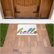 Vereinfachter, moderner Entwurf, der den Gruß "hallo" verschüttet werden weg vom Rand der Matte kennzeichnet. Saftige Farben machen es Spaß und die Einladung.