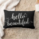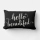 Dieses Ausrüstungsbeschreibungen die Phrase "hallo schön" in einem Weiß, moderne Skripttypographie. Kissenfarbe kann leicht besonders angefertigt werden, um Ihren Dekor zusammenzubringen, indem man besonders anfertigen es Werkzeug verwendet.