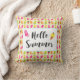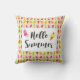 Ein Kissen mit dem Bild eines sommerlichen Musters von Popsikeln und Eis in Aquarellen. Hallo Sommer geschrieben in einem lustigen trendigen Schriftart.