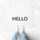 Diese Türmatte zeichnet sich durch ein minimales Schwarz-Weiß-Design aus, mit dem Text "Hello," , ein lustiger Gruß für den Eingang Ihrer Zuhause. Personalisieren Sie den Text mit Ihrem Gruß, um Ihre Gäste zu empfangen.