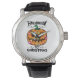 Uhr, Vintage Männeruhr mit schwarzem Lederarmband