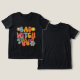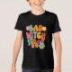 Halloween Bad Witch Vibes Retro Groovy Typografy Girls' T - Shirt präsentiert den Text "Bad Witch Vibes" in einer farbenfrohen Schrift Typografie mit Blume und Schädeln. Ideal für Halloween-Partys und Feiern. Entworfen von ©Evco Holidays www.zazzle.com/store/evcoholidays