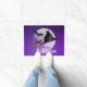 Dieses niedliche Halloween-Design zeigt eine schwarze Katze mit einem nachts fliegenden Hexenhut auf einem Hexenbesen, umgeben von Fledermäusen vor Vollmond und einem Sprichwort "Happy Halloween".