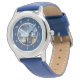 Kinderuhr aus Edelstahl mit blauem Lederarmband