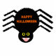 This skulpture feature a spooky black spider with eight hairy legs, yellow eyes with big black pupils and its mouth open showing its fangs. There is orange text that reads "Happy Halloween".