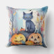 Halloween-Blue Cat mit Pumpkins Beängstigend Kissen