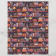 Ein weißes Halloween-Blatt mit einem Muster mit einer spukhaften virtuellen Bibliothek, Jack-o'-Laternen und Fledermäusen. Geringere Größe des Musters auf der Rückseite. Ideal für Herbst, Oktober und Halloween Handwerk. Originelle Kunstwerke von Marketa Stengl.