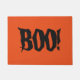Halloween Türmatte mit einem spitzigen Boo gezeigt! auf einem orangen Hintergrund drucken. Passen Sie diese Matte an oder kaufen Sie, wie es ist.