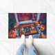 Ein Halloween-Portier mit Kürbissen, Skeletten und einem beängstigenden Hausdesign empfängt die Gäste zu einem fröhlichen Fest. Die Türe liegt auf der Vorderseite, umgeben von Kürbissen und Skeletten. Herzlich willkommen bei Ihren Lieben im Stil mit dieser - erstaunlich farbenfrohe Halloween-Nachricht. Entwerfen Sie Ihre Füße vor der Türmatte.
