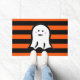 Halloween Ghost on Black and Orange Stripes Fußmatte