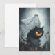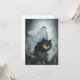 Halloween-Szene mit einem Geist, der auf einer schwarzen Katze reitet