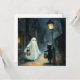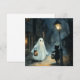 Halloween-Szene mit einem Gespenst- und Katzentreffen auf der Straße