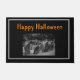 Die saisonale Haustür bietet ein schwarz-weißes Foto von Grabsteinen auf dem Friedhof, das mit einem individuell gestaltbaren Text perfekt zu Halloween wird.