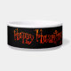 "Happy Haunting" text in spectral orange letters, with a few ghostly eyes, a humorous design for a haunting Halloween. Decorating for Halloween with your pet.