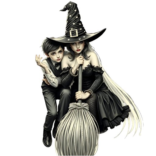 Feiern Sie Halloween mit diesem auffallenden gotischen Design mit einer geheimnisvollen Hexe und ihrem jungen Gefährten