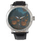 Uhr, Vintage Männeruhr mit schwarzem Lederarmband