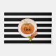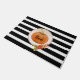 Halloween "Boo" Pumpkin Doormat. Das ist niedliches Halloween-Design in modernen schwarz-weißen Streifen.