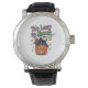 Uhr, Vintage Männeruhr mit schwarzem Lederarmband