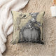 Eine dunkelromantische, gotische Collage eines Halloween-Maskenballs, mit Vintage-Bildern eines Skeletts, einer französischen Modeplatte aus dem 18. Jahrhundert, Kerzensticks, einer versteinerten Katze. Auf der Rückseite des Kissens befindet sich ein Kronleuchter, sowohl die Vorderseite als auch die Rückseite sind auf einem Hintergrund einer handgeschriebenen Zeugenaussage aus den Salem-Hexen-Prozessen verlegt.