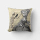 Eine dunkelromantische, gotische Collage eines Halloween-Maskenballs, mit Vintage-Bildern eines Skeletts, einer französischen Modeplatte aus dem 18. Jahrhundert, Kerzensticks, einer versteinerten Katze. Auf der Rückseite des Kissens befindet sich ein Kronleuchter, sowohl die Vorderseite als auch die Rückseite sind auf einem Hintergrund einer handgeschriebenen Zeugenaussage aus den Salem-Hexen-Prozessen verlegt.