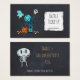 Ein Halloween-Party verlost ein Ticket mit einer spöttisch gruseligen coolen Halbbilderzeichnung. Ein eisblauer Geist schwimmt in der Luft. Ein alter toter Baum hat eine Eule, die auf ihren Zweigen sitzt und eine Fledermaus auf dem Kopf hängt. Eine Hand erhebt sich aus einem alten Grab. Fledermäuse fliegen um einen glühenden Mond. In einem Kürbis, in dem sich ein Süßmais befindet, wird ein wenig Süßigkeiten bis zum Rand gefüllt. Ein Schädel schwebt in der Luft. Schreib die Losnummer. Auf der Rückseite ist ein glückliches lächelndes Skelett, das Sie mit Ihrem Party und Jahr der Feier personalisieren können. Im Text steht auch - vielen Dank für die Zusammenarbeit mit uns.