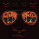 Eine herrliche Halloween-Sonnenbrille mit einem orangen Jack-o'-Laterne geschnitzt, schreit in der Kürbisgesicht.