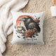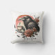 Eine lustige Art, zu Halloween und für Kaffeeliebhaber zu dekorieren: Ein Rabe mit Kaffeetasse und Rose auf rosa Hintergrund auf einer Seite des Kissens und auf weißem Hintergrund auf der anderen Seite. Viel Spaß!