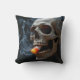 Ein Schädel hält ein Stück Süßmais in den Zähnen, was skurrile Wirbel von Rauch auslöst
