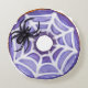 Niedlich gemalte Illustration eines spukhaften, süßen Donuts mit schlankem lila Zuckerguss, Zuckerwatten und spitziger Spinne! Passen Sie den Text auf der Rückseite an, um ihn als besonderes Halloween-Geschenk zu versenden.