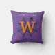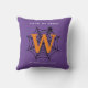 Halloween Spider Web Trick oder Treat Monogram Kissen mit lila Hintergrund und Orange Initial. Frohe Halloween! Feiern Sie die beängstigende Nacht des Jahres mit dieser Spinnennetz-, Spinnen- und Monogramm-Erstausführung in Schwarz, Weiß und Orange. Mit dem Text "Trick or Treat", der auf Ihr gewünschtes Zitat geändert werden kann. Text bereit, um mit Ihrem Namen und Initial anpassen.