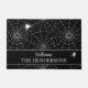 Die schwarz-weiße Halloween-Türmatte mit Spinnen und Spinnweben ist ein wunderschöner Hingucker. Der gesamte Text ist für Sie so anpassbar, dass Sie Ihre eigene Nachricht und Ihren eigenen Familiennamen hinzufügen können