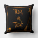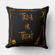Ein minimalistisches Orange- und Schwarzwurzel-Design mit den eindringlichen Symbolen Halloween, Halbmond, Schädel und Hexenbesen. Für diesen besonderen Halloween-Trick oder ein Leckerbissen oder Halloween-Party. Mit unserem Halloween Trick oder Treat wurf Kissen kommen Sie in den geilen Geist! Dieses festliche Geschenk ist perfekt für Halloween-Partys.