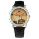 Uhr, Vintage Männeruhr mit schwarzem Lederarmband