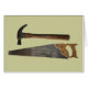 Foto eines Hammers und einer Säge auf kuschelbarem Hintergrund. Text kann nach Wunsch geändert oder hinzugefügt werden. Tagegeschenke des Großvaters, Geschenke für Bauarbeiter, Zimmerleute.