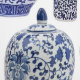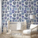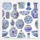 Peel and stick Hamptons Ingwergläser gemusterte Tapeten in Blau-Weiß-Tönen
