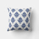 Elegantes Kissen im Hampton-Stil gemustert mit einem blauen Vintagen Damast-Motiv auf Weiß