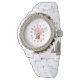 Diese phantastische Uhr zeigt ein grafisches Bild eines Kirschbaumes, der mit rosa Blüten bedeckt ist und von einem Kreis von hübschen Kirschblüten-Blume, Sakura genannt, umgeben ist. Dieses Design wurde geschaffen, um das japanische Hanami Festival zu feiern und enthält das Wort Hanami im Kirschbaum. Die Feier markiert den Frühling, während sich die Leute unter den blühenden Kirschbäumen treffen, um ein Picknick zu machen.