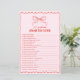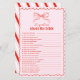 Add festive fun to your celebration with this red and pink hand drawn bow 20 Questions About the Bride game, perfect for a Christmas bridal shower, winter wedding shower, or festive holiday gathering. A sweet activity for a merry little bridal shower, this quiz invites guests to share cute memories and fun facts. The warm seasonal palette and playful bow accents make it ideal for cozy winter parties and holiday-inspired bridal events.