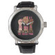 Uhr, Vintage Männeruhr mit schwarzem Lederarmband