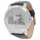 Uhr, Vintage Männeruhr mit schwarzem Lederarmband