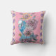 Handgemalte rosa blaue, rosa Budgie Blumendekissen Kissen. Ein wunderschönes Blumendesign in Aquarelltönen. Entworfen aus meinen ursprünglichen Aquarellbildern, die ich aus meinem eigenen Blumengarten gemalt habe.